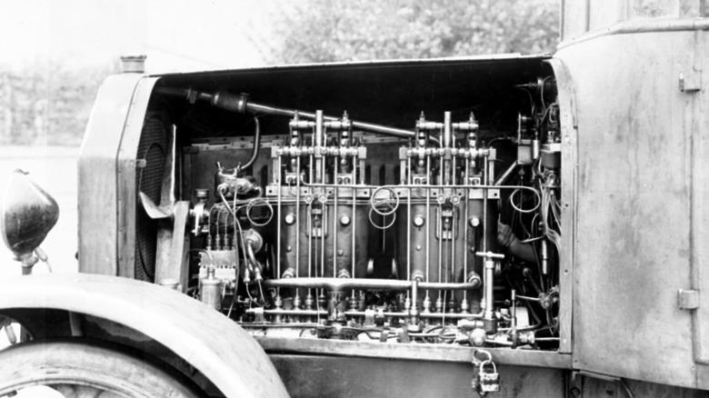 In 1923, the Benz & Cie. diesel truck was equipped with a four-cylinder OB 2 engine, which produced 45 horsepower at 1,000 rpm. This engine showed significant improvement in fuel efficiency compared to its gasoline-powered counterparts and was also capable of running on various fuels, including gasoline and paraffin oil. Around the same time, Daimler-Motoren-Gesellschaft was showcasing its diesel engine truck with an air-injection engine that produced 40 horsepower at 1,000 rpm. When first demonstrated in public in Berlin that October, it made a strong impression in its first appearance as part of a truck, bus, and three-sided tipper.