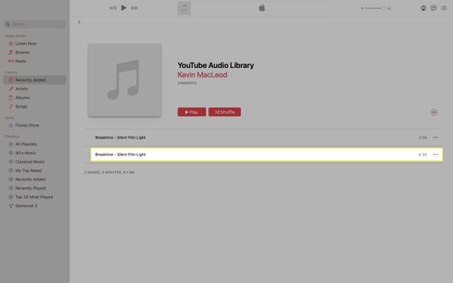 The 30 second clip will be displayed below the original clip in the list.