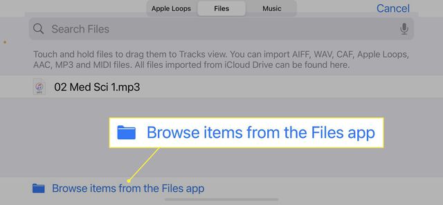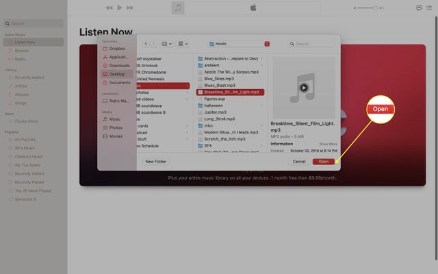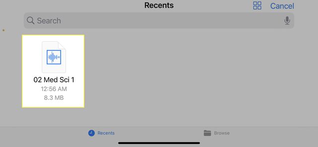 You can also click on the play button that is embedded in the file's icon to play a preview before selecting it.