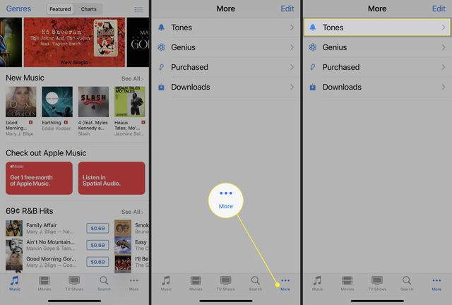 To hear a tone before buying, tap on its blue name. Alternatively, go to the main menu and tap on the ringtone icon.