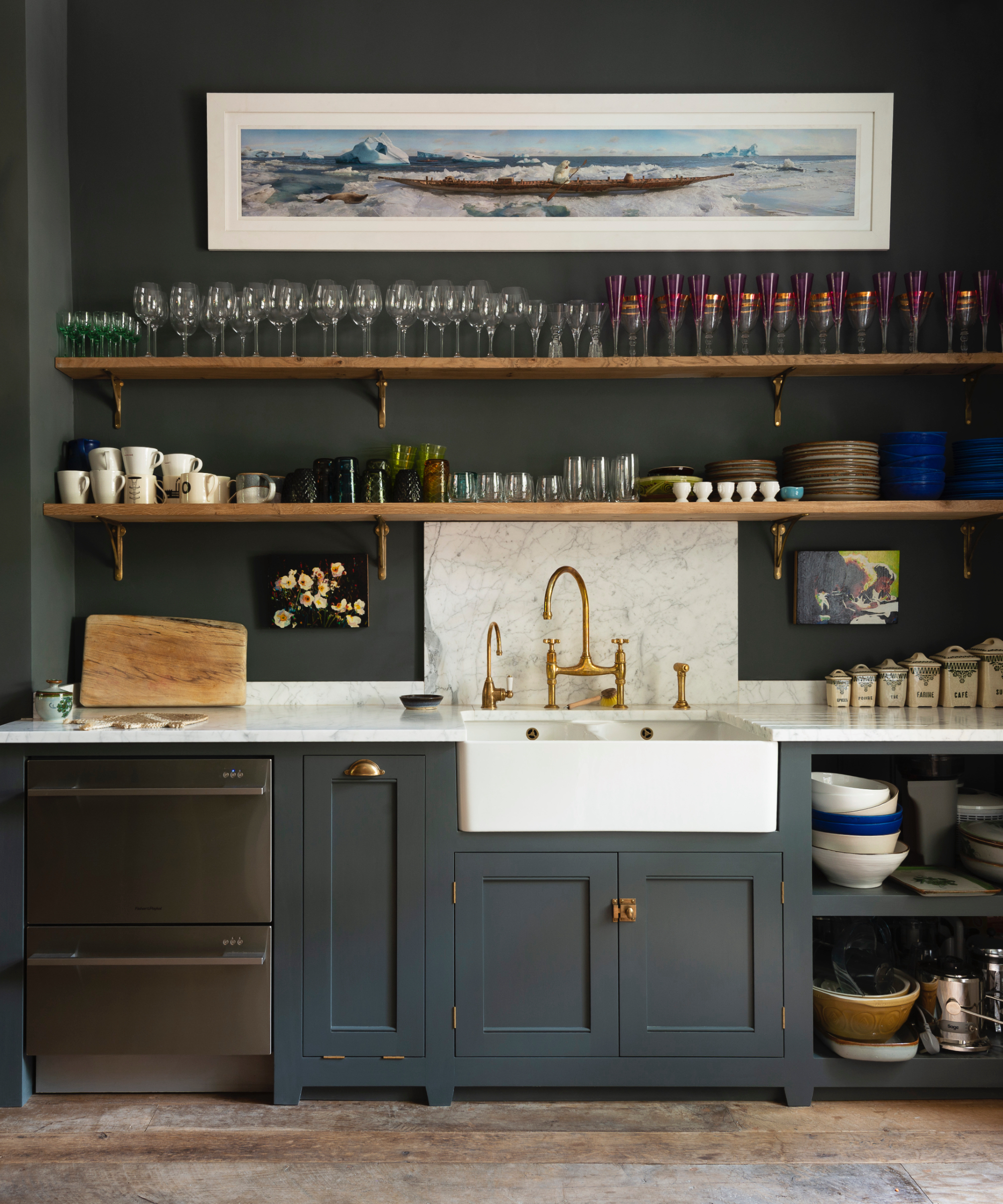 'Then white and cream accents like a high-gloss marble-style countertop can help to stabilize the overall look, creating a modern and up-to-date appearance.'
